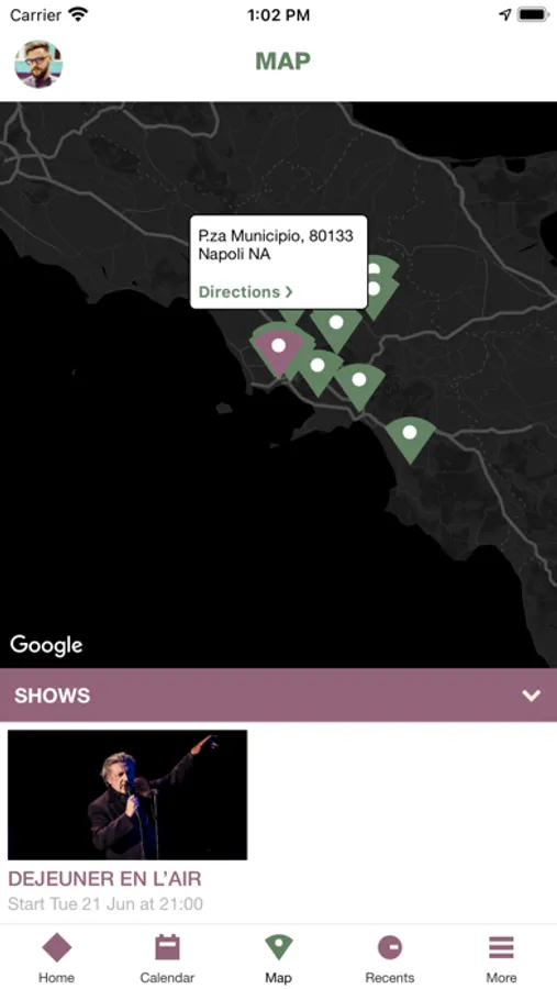 Thanks to the Map you will discover all the events close to you and also receive more information about the stage venues by selecting them with the feature “Navigate To”!