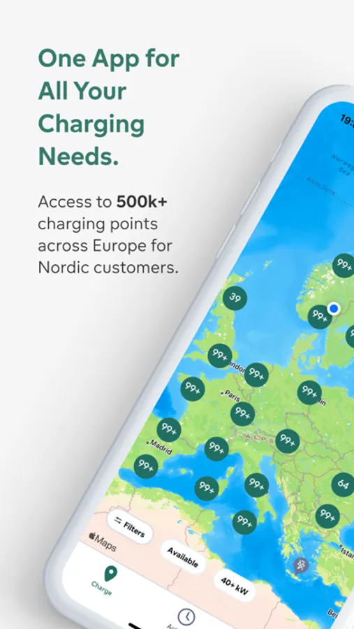 Charging Everywhere You Go – Gain access to thousands of charging stations in Norway, Sweden and Finland, and when travelling across Europe. Find available charging points near you or along your planned route. Use filters to display only high-speed charging stations with a minimum of 50 kW capacity.