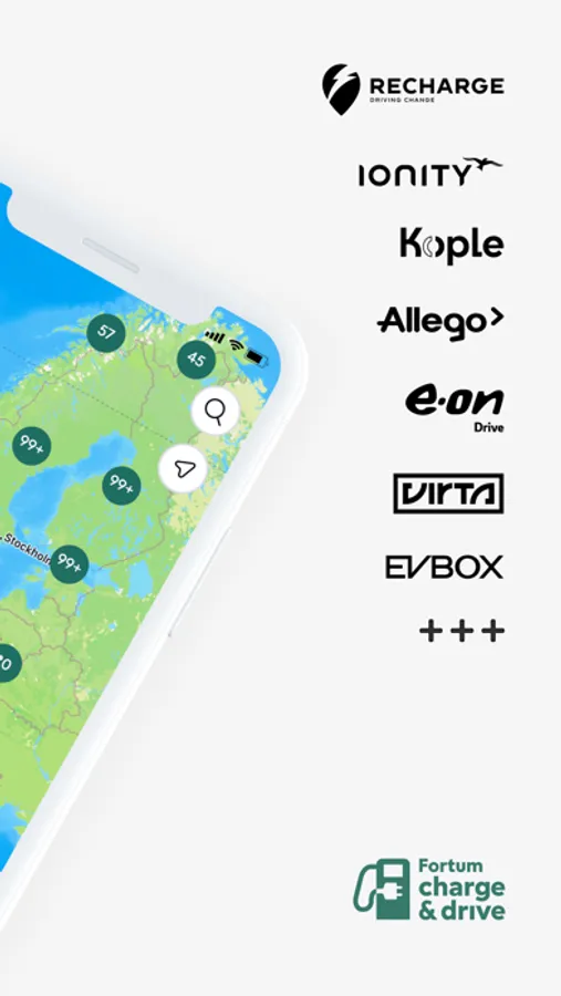 Join the Fortum Charge & Drive network and experience stress-free EV charging at major operators, including Recharge infra, Kople, IONITY, Mer Sweden, E.On., Fastned, Ewe Go, Allego, EnBW, Greenflux, Aral Pulse, Monta, Enel X, Shell Recharge, Virta and nearly 1,000 others.