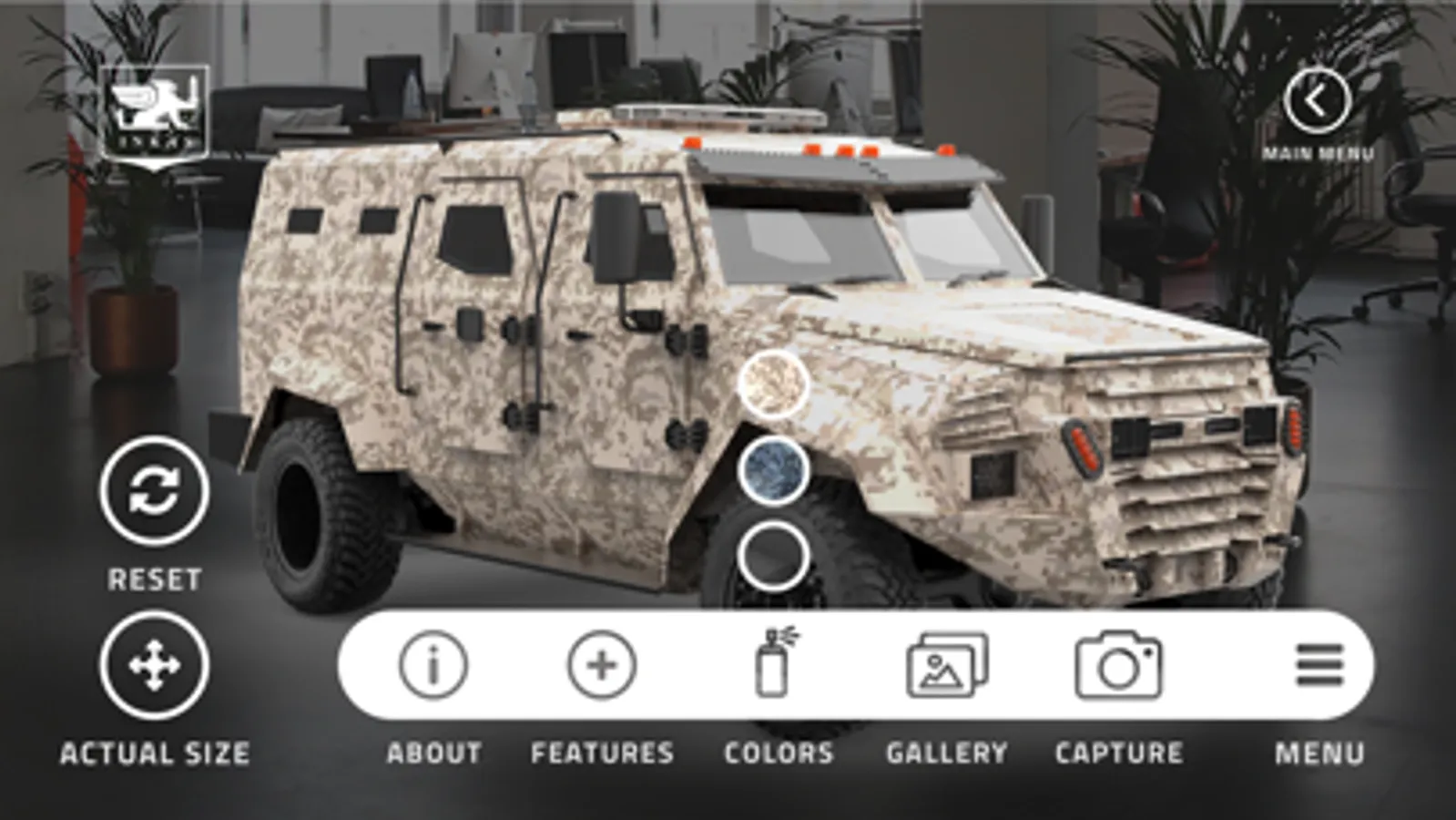 With this app you will be able to select and view armored vehicles from our lineup through augmented reality. This gives you the opportunity to virtually interact with INKAS® armored vehicles anywhere. Quickly view our vehicles from any angle, repaint them in various colors and learn about their cool features. New updates and features will follow regularly to enrich your experience.