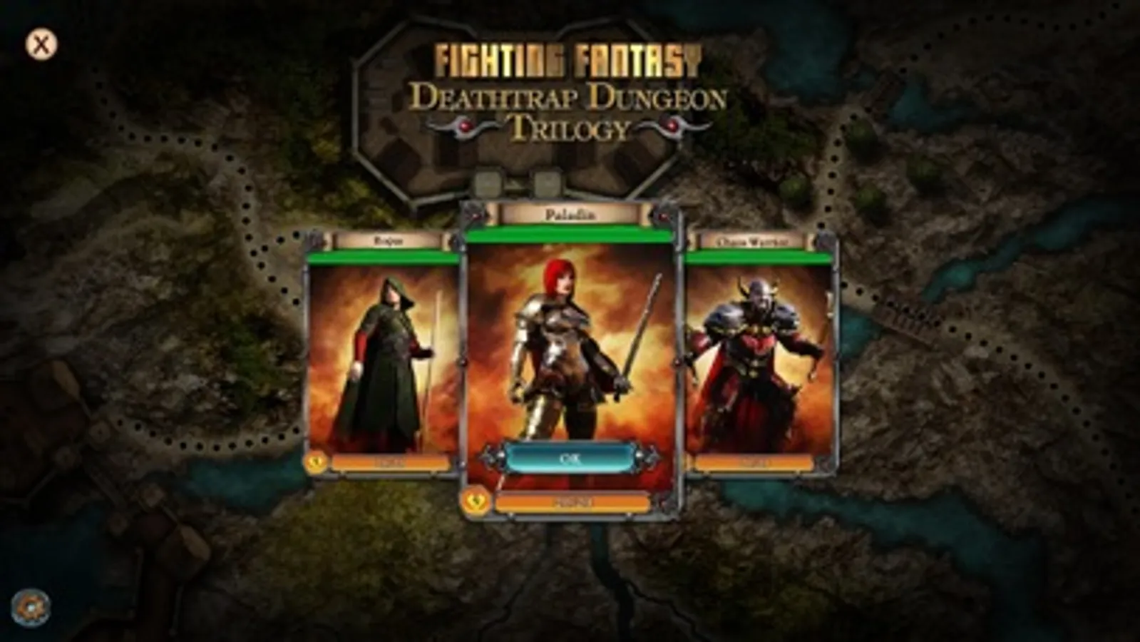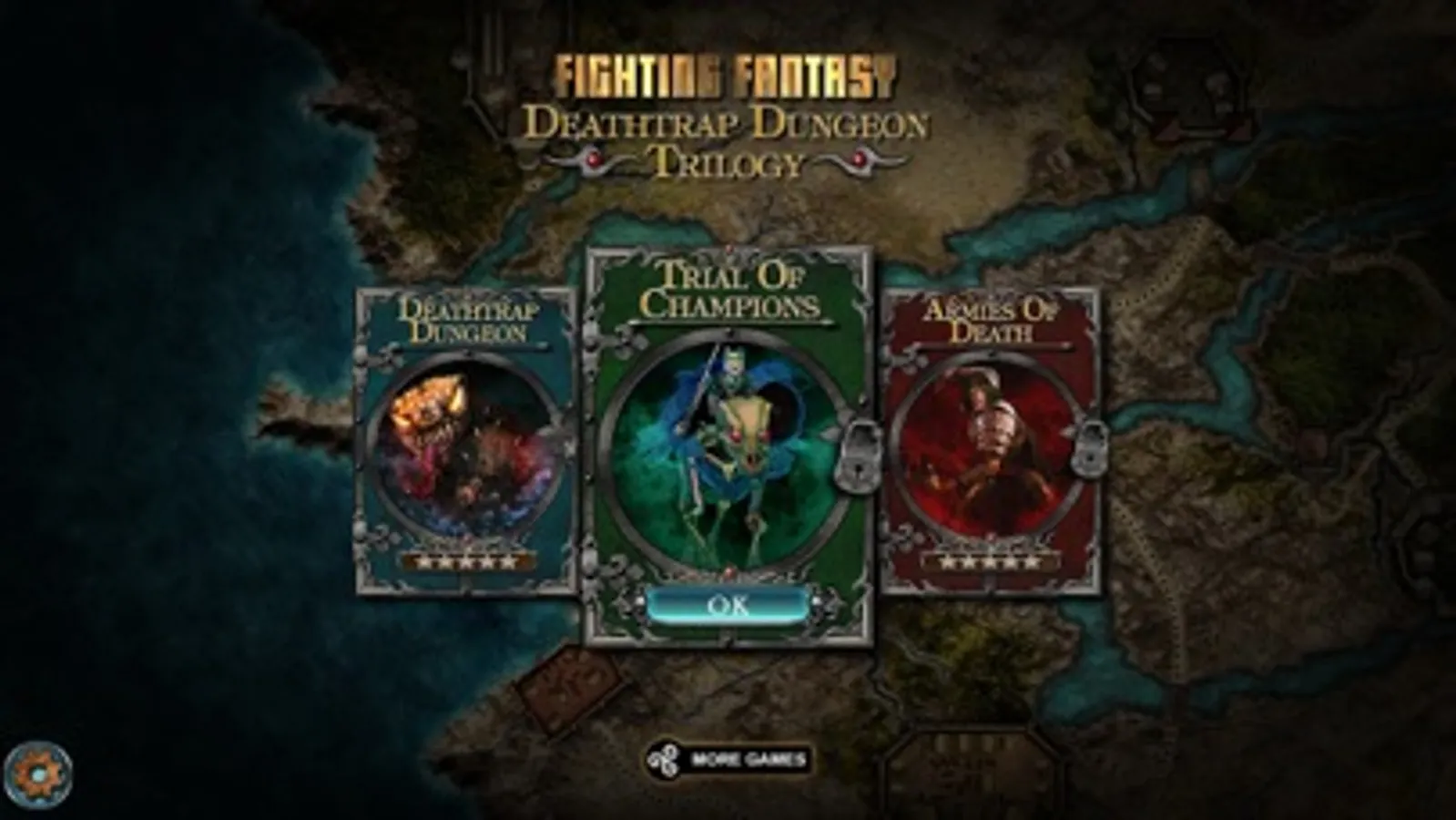 Play through three classic Fighting Fantasy gamebooks by author Ian Livingstone - Deathtrap Dungeon, Trial of Champions and Armies of Death.