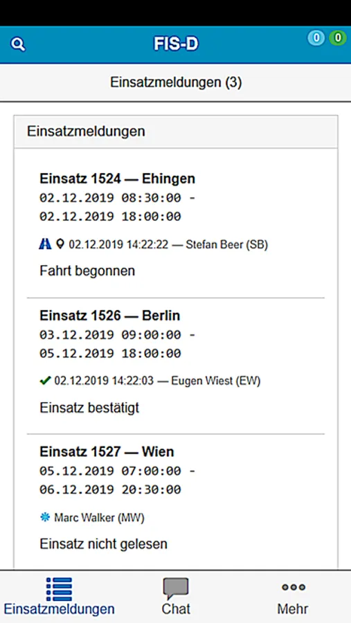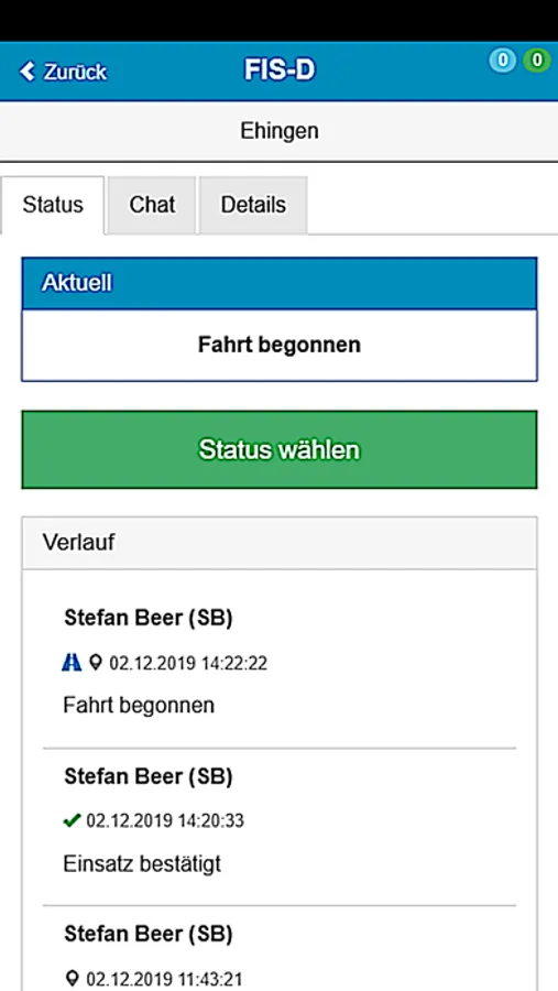 Eine weitere Funktion der FIS-App ist der Chat, mit dem sich Fahrer und Disponent auf dem Laufenden halten können. Der Chat kann wie ein Notizbuch genutzt werden, denn für jede Fahrt gibt es einen eigenen Chatraum. Das heißt, dass man eventuelle Vorkommnisse im Nachhinein sofort wiederfindet und dokumentieren kann.