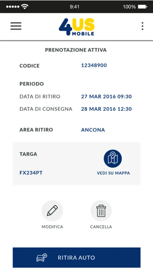 Prenotazione, ritiro e restituzione dell’auto sono effettuati con pochi semplici click via app.