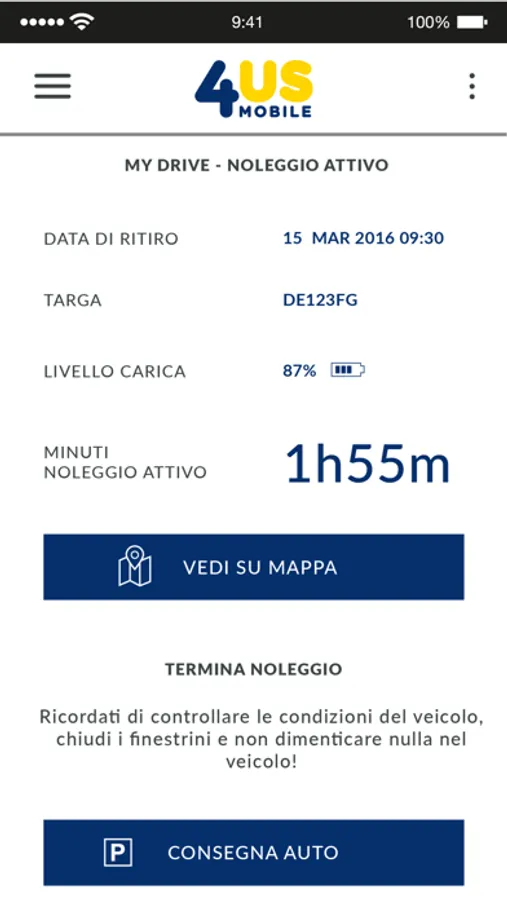 MY DRIVE: vedi tutti i dati della prenotazione attiva e del tempo rimanente di noleggio.