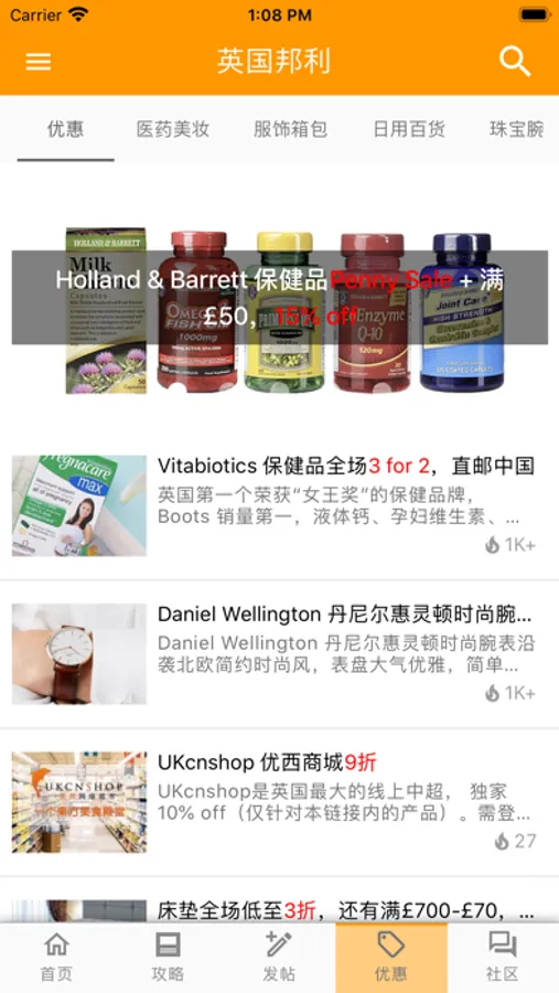 英国邦利优惠版块,我们及时为大家更新英国最受欢迎的品牌打折信息,除了在线打折信息外,我们还会不定期为大家申请独家优惠,比如Holland & Barrett 保健品、HPV 疫苗、Vitamin Planet 美妆保健、Lookfantastic 美妆、Harrods 百货、在线中超等等,让大家在英国更省钱地买买买。