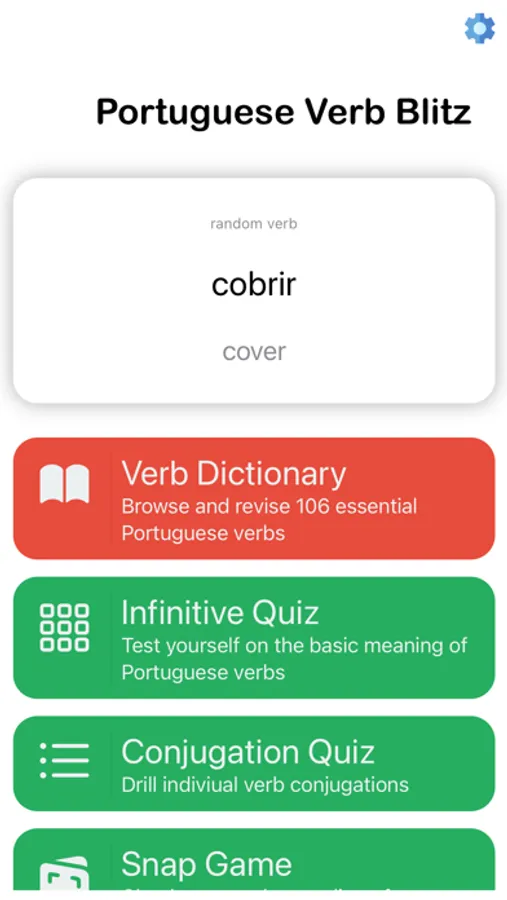 The verbs selected represent some of the most commonly used Portuguese words, so Portuguese Verb Blitz is a great way to increase and practise your everyday vocabulary, too.