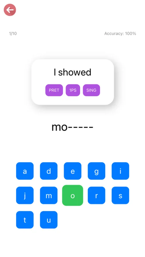 - Gapfill: can you spell out the missing word in the conjugated sentence?