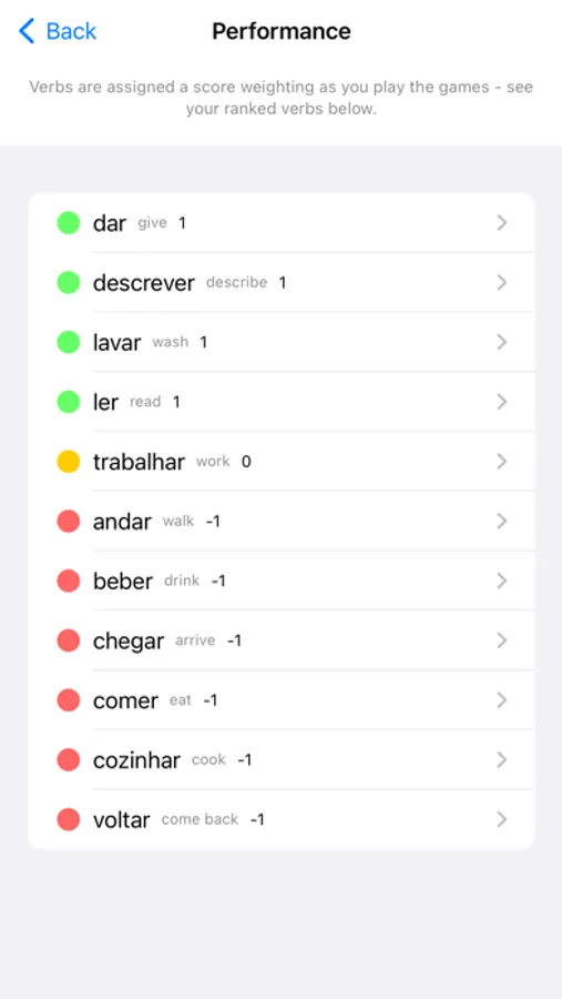 The app will track your scores throughout the games, so you can check in the Performance section at any time to see the entries you're finding trickiest.