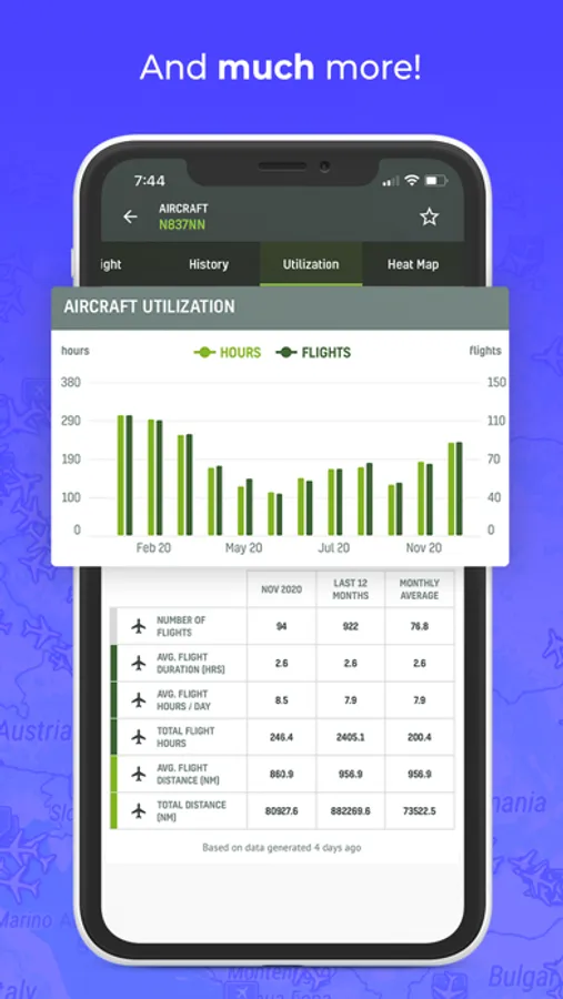 - Add flights to a list and track your fleet.