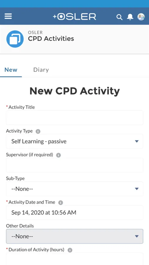 Osler also helps you track the interesting and significant patients you see, and the learning activities you undertake as part of your Continuing Professional Development diary.