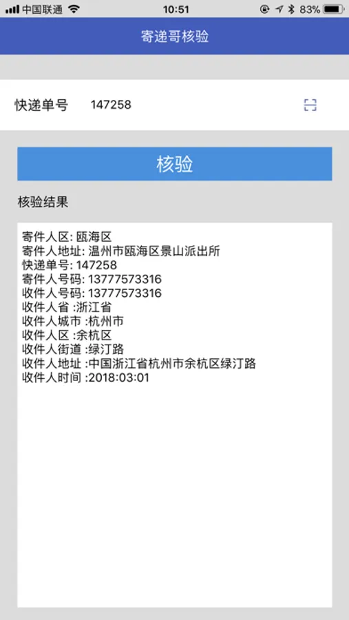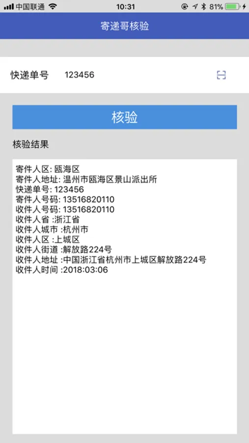该应用用于快递员用来核实快递单的真实有效性的,是人脸比对应用的配合应用