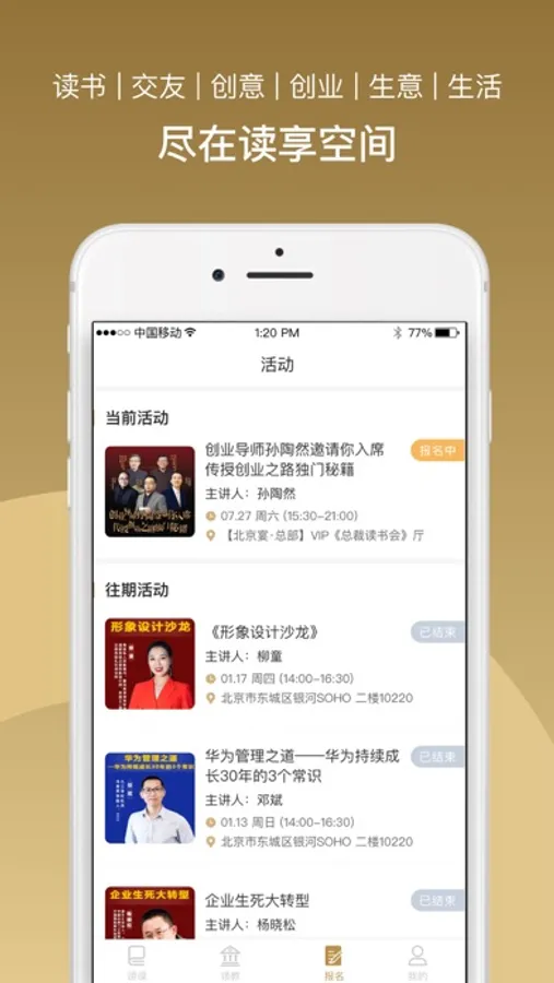 总裁读书会是国内著名机构、媒体、企业和社会知名人士发起的企业家与企业全员终身读书学习运动;首创“众筹赢智汇”学习新模式,致力于打造企业家与商业精英智慧资源共享第一平台。总裁读书会是中国首创通过在线学习沙龙、电视节目、现场实战课程和全媒体内容出版,把商界巨子、名师学者与高端会员聚集在一起,线上线下结合的高端智慧分享与社交平台。