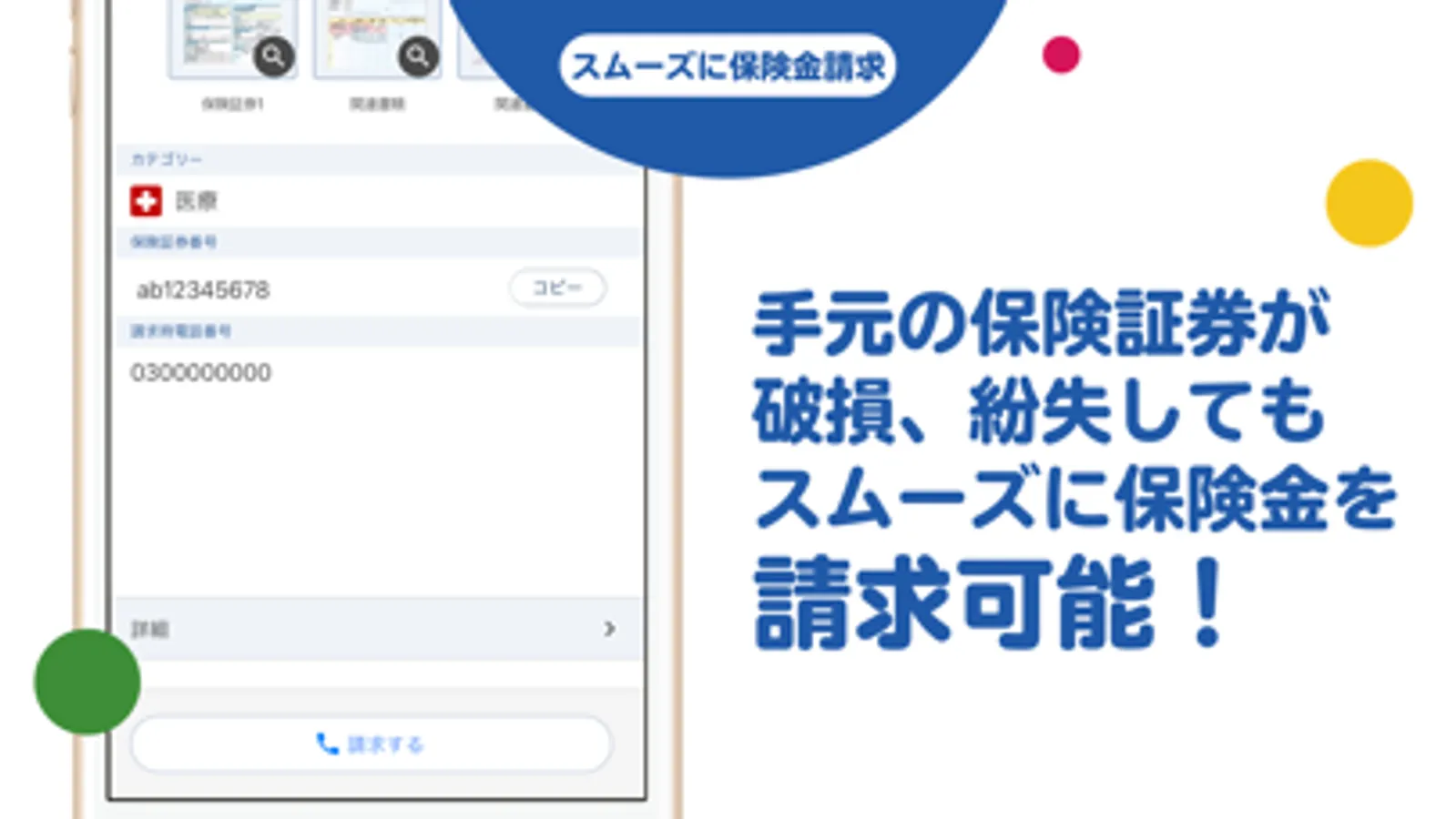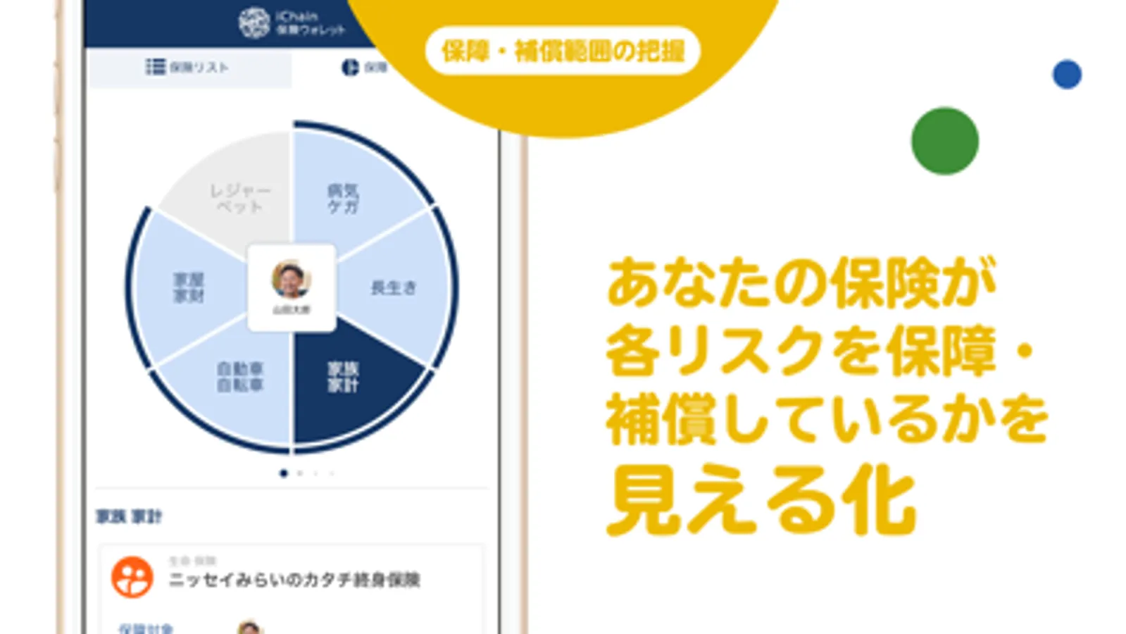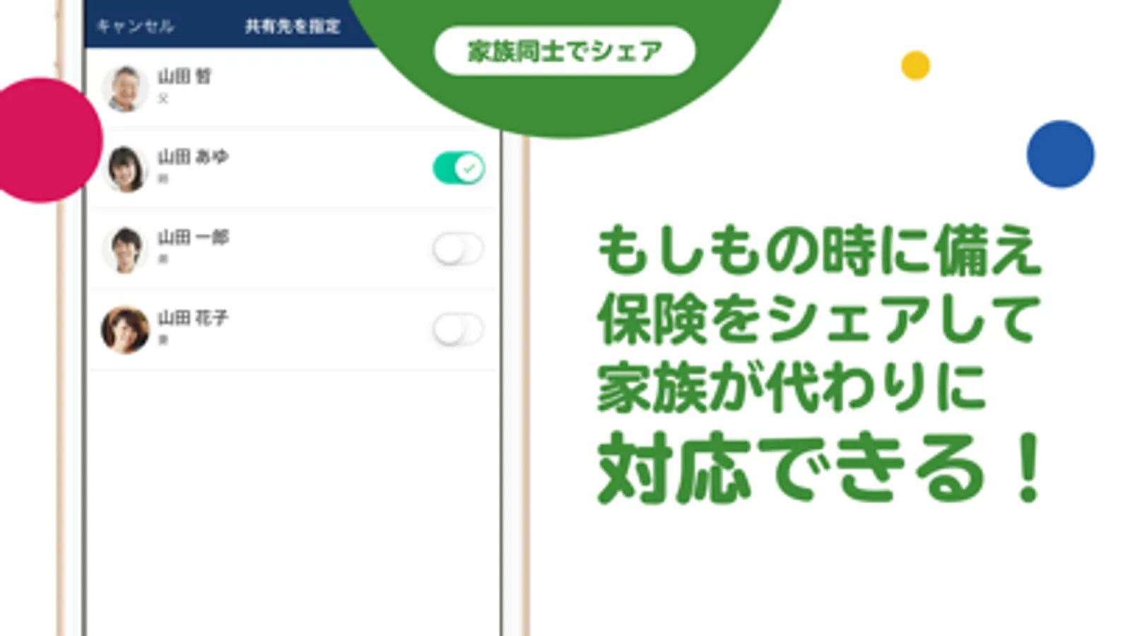 あなたや家族の保険を一元管理できるアプリです。契約者、保険料、受取人、期間などをスマホで確認できます。さらに家族間で保険情報を共有できるので、もしもの場合でも保険金・給付金申請がスムーズにできたり、家庭全体で保険の見直しができます。