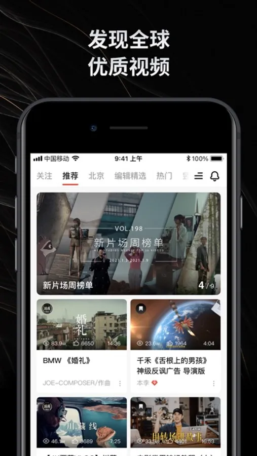 汇集全球最新原创短视频,提供超高清、无广告的视频播放体验,与视频制作大咖和爱好者直接交流。应用内包含全球视频精选、国内优质剧情短片、燃情混剪作品、高质量的创意广告、脑洞大开的短视频和Vlog,极具创意的MV和实验短片,还有视频幕后知识和器材测评...带你感受不一样的创作世界。