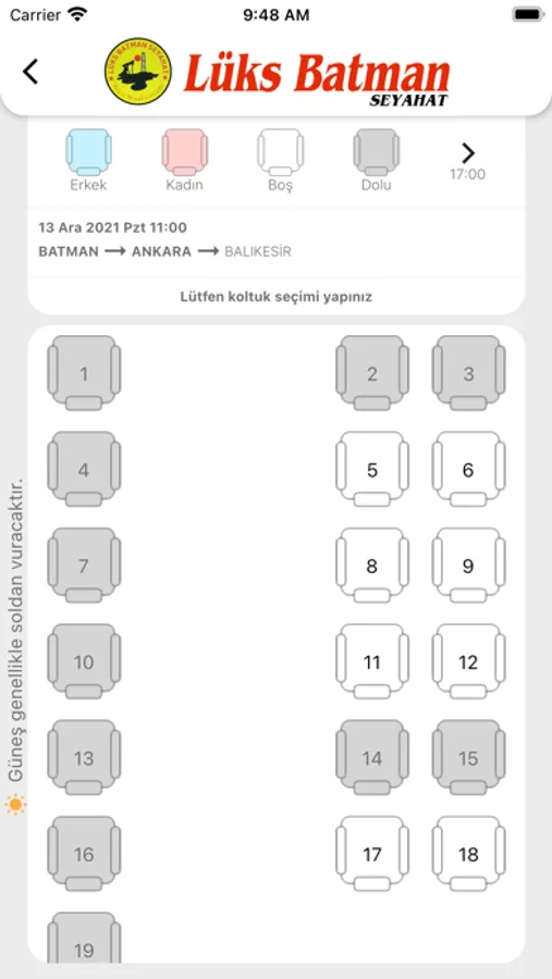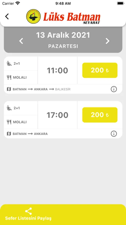 Lüks Batman Seyahat'ın şehirlerarası ulaşım biletlerinin satılmasını sağlayan bir iPhone uygulamasıdır.