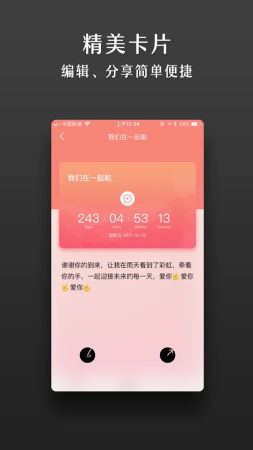 选择一个你们在一起的日子或创建一个值得纪念的事件,秒级别的正计时展示你的纪念时间。