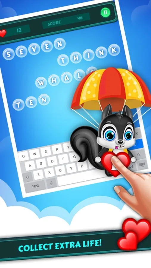-Pop the parachute bubble and the relative number of on-screen words will be popped.