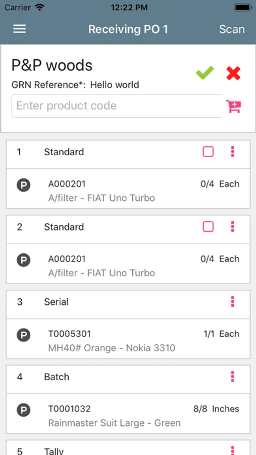 - Scan barcoded purchase order or order lines. Supports most barcode formats in 1D and 2D