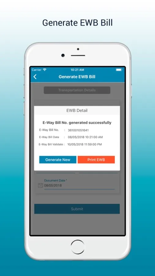When an e-way bill is generated a unique e-way bill number (EBN) is allocated and is available to the supplier, recipient, and the transporter.