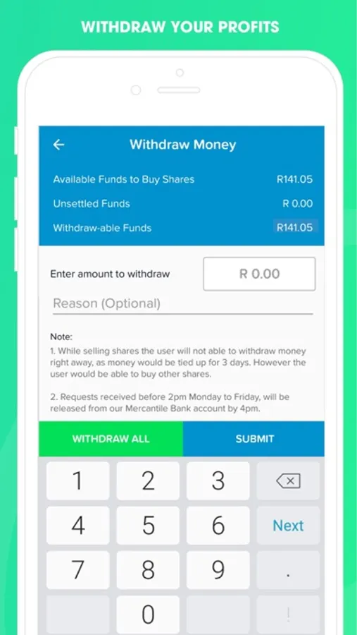 Ruturn Trading is constantly developing and improving the app. If you happen to encounter any bugs, let us know so that we can get it fixed support@ruturntrading.co.za