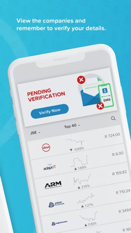 5. Buy a share or build a portfolio - Use the Top 40, Best of the day, Sectors or search to find a specific company.