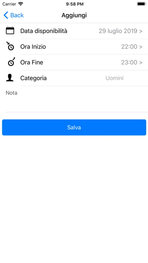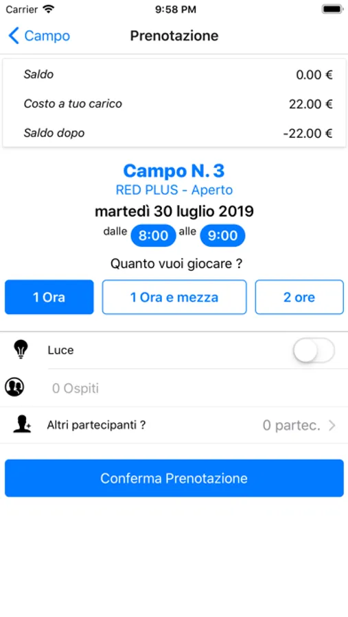 App personalizzata del sistema di prenotazione campi EIS del Tennis Club Le Querce di Casorate Sempione Varese Italia