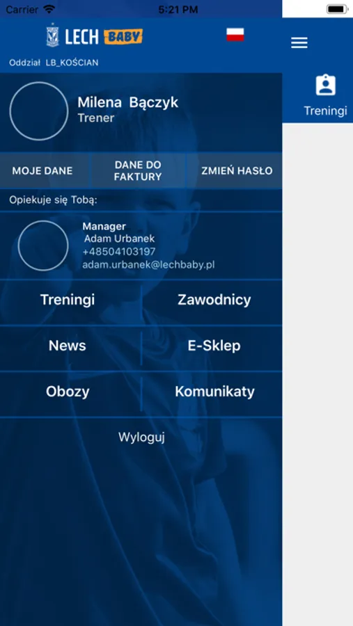 - potwierdzisz obecność lub zgłosisz nieobecność dziecka na najbliższym treningu;
