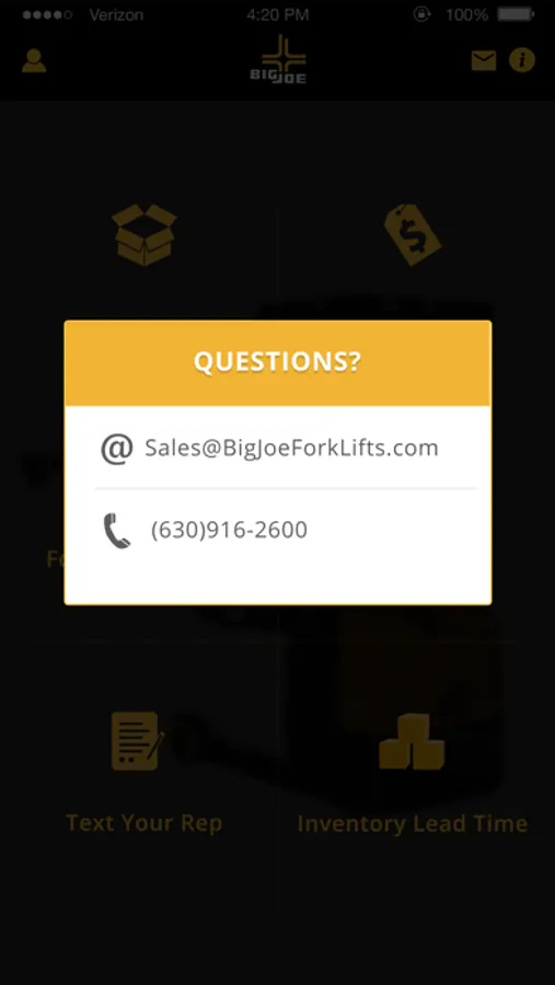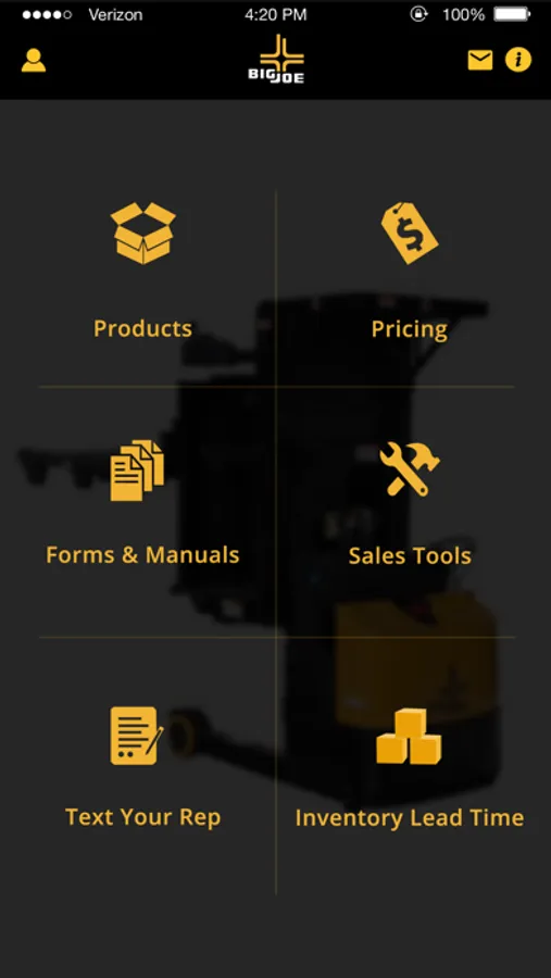 Big Joe GO! is a free mobile application for Big Joe dealers and distributors to have access on the go to product information, spec sheets, current pricing & inventory, and much more. Instantly message your sales representative and get near real-time answers to questions. Download today!