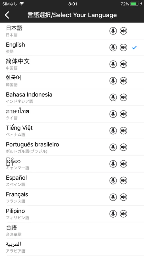 日本語<>英語/中国語(簡体字)/韓国語/インドネシア語/タイ語/ベトナム語/ポルトガル語(ブラジル) /ミャンマー語/スペイン語/フランス語/フィリピン語/台湾華語(繁体字) /アラビア語/イタリア語/ウルドゥ語/オランダ語/クメール語/シンハラ語/デンマーク語/ドイツ語/トルコ語/ネパール語/ハンガリー語/ヒンディ語/ポルトガル語/マレー語/モンゴル語/ラーオ語/ロシア語