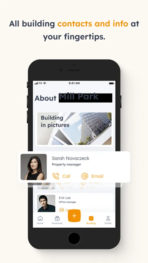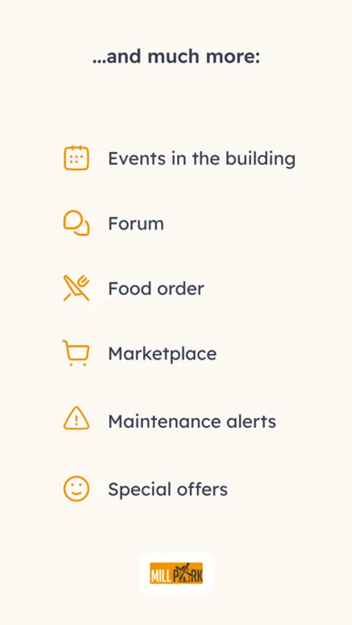 This application is intended not only for employees that work in Mill Park but for their visitors as well. Important information about the building is organized on the dashboard, which dynamically changes throughout the day. The app offers more functionality including forums, ability to request maintenance, events, information about companies in the building and about the building itself where you can find important contact, guides and documents.