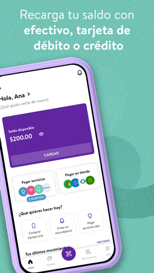 Solo descárgala, crea tu usuario e ingresa tu saldo en efectivo en cualquiera de nuestras tiendas (Walmart, Bodega Aurrera, Walmart Express y Sam's Club) o con tu tarjeta de crédito/débito y obtén beneficios exclusivos como bonificaciones o descuentos en productos seleccionados.
