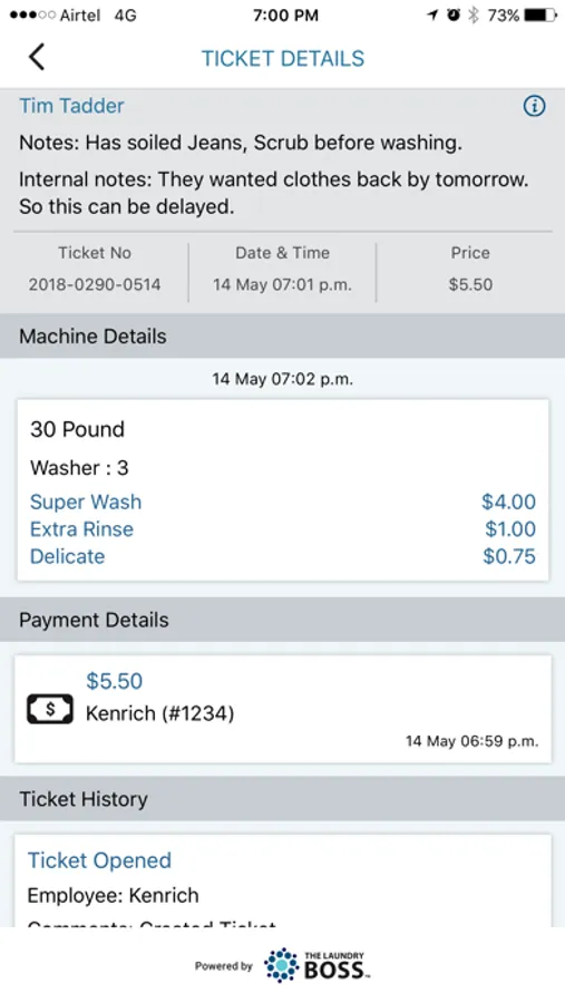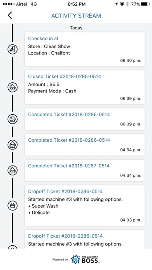 The Laundry Boss™ Attendant App just made managing your laundromat a whole lot easier! The app comes with features like Wash-Dry-fold ticketing, Attendant time clock, failed transactions resolution management, free starts, activity stream, transaction list, let customers earn loyalty points with your wash-dry-fold…etc. You must have The Laundry Boss™ payment and control system installed to use this app. Printer and cash drawer are extra.