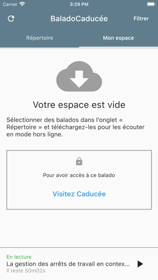 Balado-Caducée est une application reliée au portail de formation en ligne médicale Caducée de la FMOQ. Elle permet aux utilisateurs du portail qui sont inscrits à des formations de les écouter toutes dans un même espace.