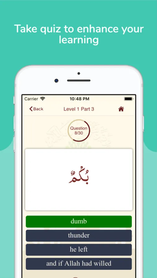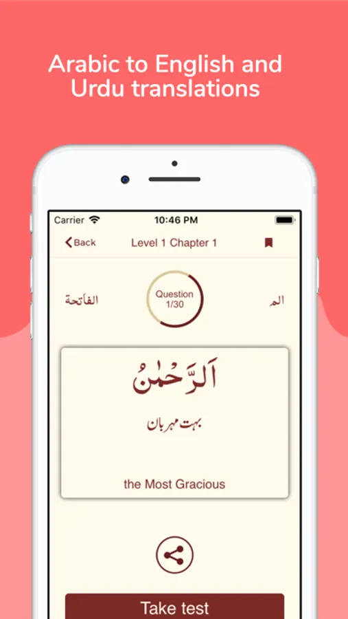This application is an enhanced version of Learn Quran Vocabulary 100% application to support Urdu and English languages. Application contains 108 common words level-1 which covers 25% of Quranic vocabulary.  There are 2000 unique words in Quran which covers full Quran vocabulary of 80,000 words. If you learn 33 words per day then you can learn complete Quran vocabulary in 60 days and if you learn 22 words in a day then you can learn in 90 Days.