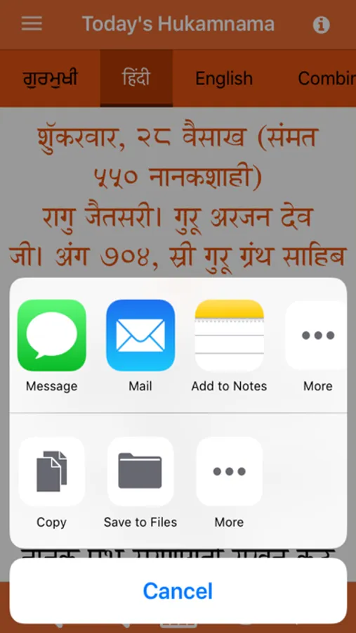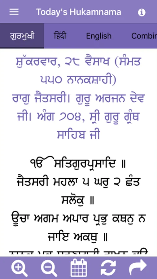 2) User can read Hukamnama in Gurmukhi, Hindi and English.