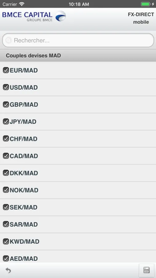 BMCE FX DIRECT est la première plateforme de cotation en ligne au Maroc vous permettant d’accéder au marché des changes en temps réel pour réaliser vos transactions commerciales et financières libellées en devises. Cette version mobile permet aux clients de consulter le cours des devises en temps réel.