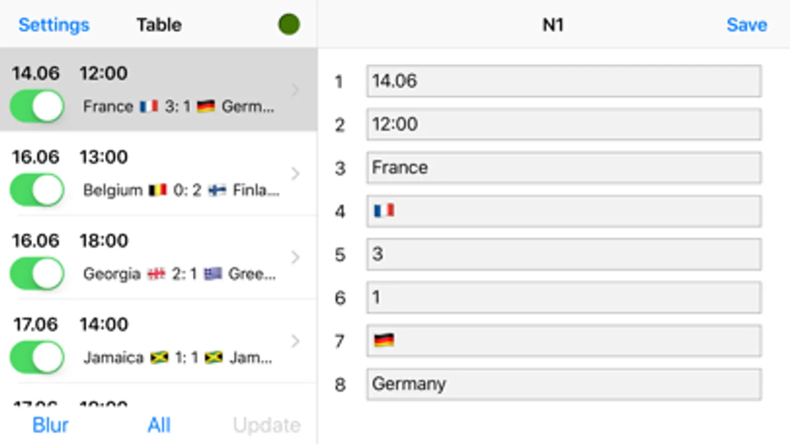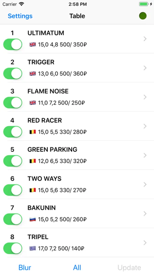 Edit or hide any row in the table. Blur the whole table. Force an animation of all rows or animate only changed.