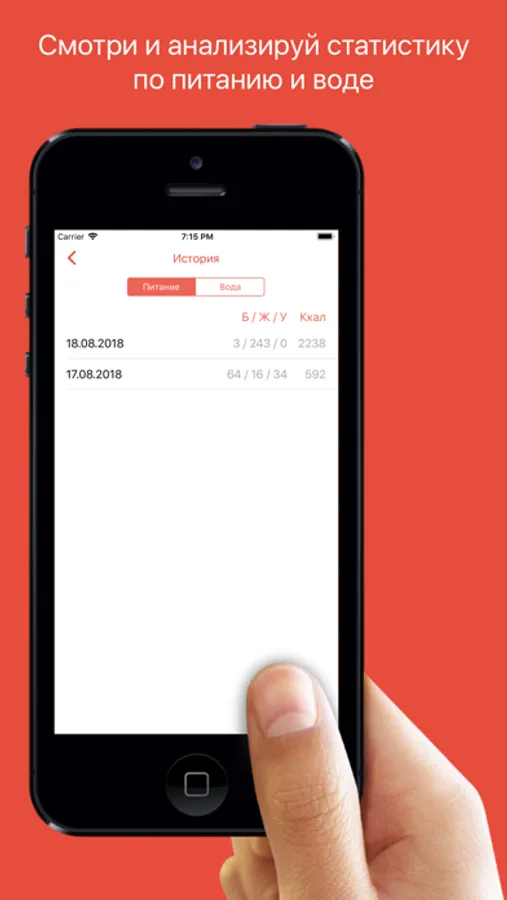 Приложение предназначено для учета и анализа потребляемых калорий, белков, жиров и углеводов, а также для учета выпитой воды.