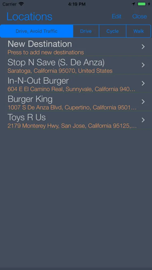 - Ability to long press on the main map to drop a pin and quickly get directions to a location.