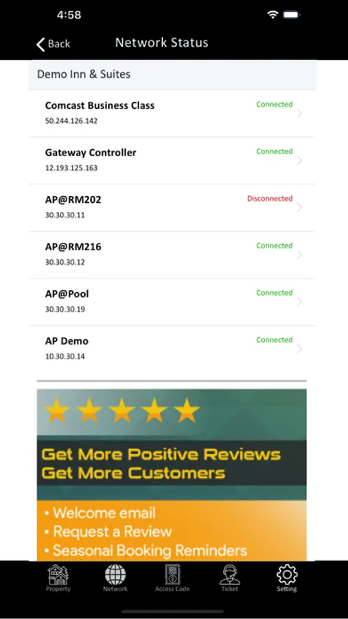 Live hotel wi-fi network status and usage reports