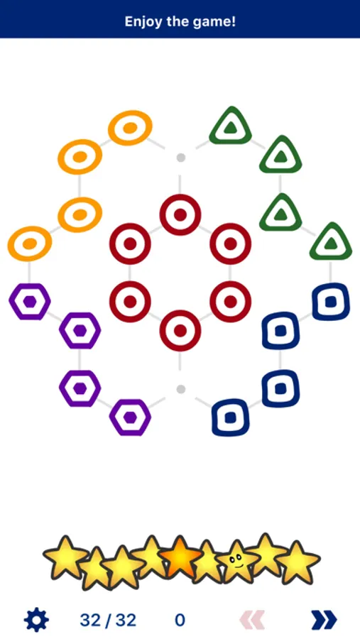 We want everyone (disabled, special needs, and able-bodied) to be able to play. Reading ability doesn’t matter. There’s no timing involved, so kids on the autism spectrum can proceed at their own pace. The rings and positions are distinguished by both shape and color, so color blindness is never an issue. Levels can be played in any order. Moves involve sliding the rings along the paths. The hit areas are large. And there’s always Go Back and Try Again so everyone can quickly recover from any mistakes.