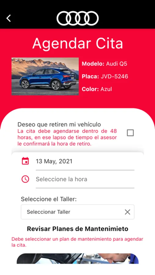 Aplicación para separar citas y llevar el control de mantenimiento de tu AUDI