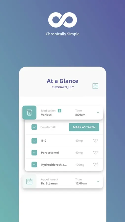Chronically Simple makes dealing with a chronic illness less overwhelming. It stores all of the must-have information and daily tasks in one place. It’s accessible wherever you are and can be updated from anywhere.
