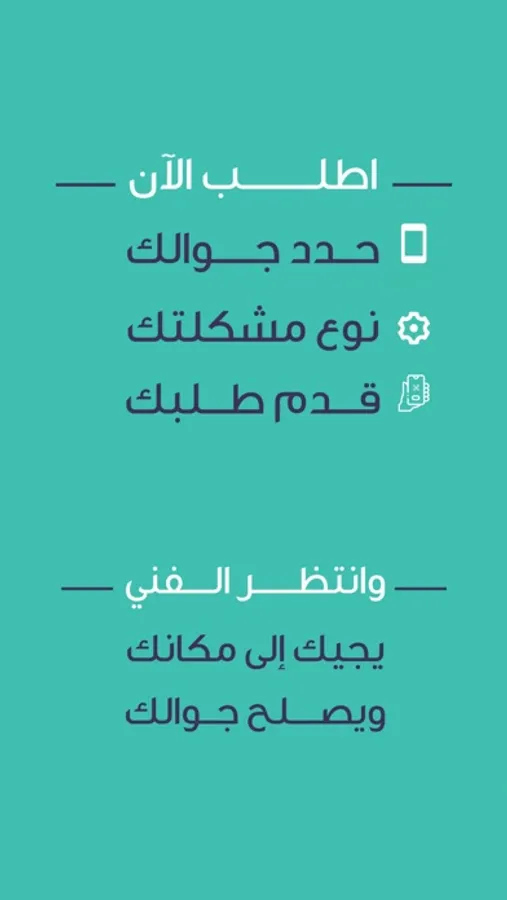 نصلح جوالك وأنت في مكانك .. نربطك بأفضل الفنيين في منطقتك وبطريقة استخدام للتطبيق سهلة وبسيطة.