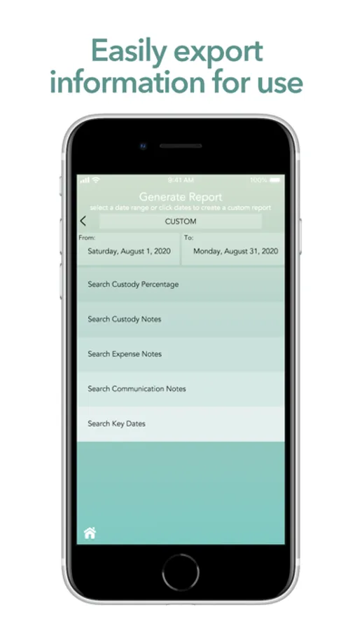 export your report into excel in date order by category including links to any screen grabs and photos you’ve uploaded. This is a great resource for your affidavit or any legal preparation for your divorce or for when any changes occur that you may need to seek advice or take legal action on in the future.