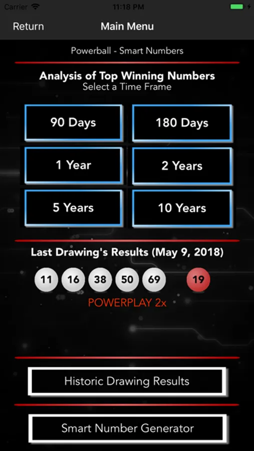 This app allows you to make SMART decisions when selecting numbers for your next Powerball drawing. We provide you with a detailed analysis of the most common jackpot numbers for every drawing in the last 10 years. This app retrieves the latest drawing results in real time.