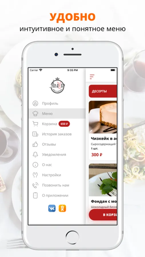 Скачивайте наше приложение, оформляйте заказ и наслаждайтесь любимой едой, где бы Вы ни были! Приятного аппетита!