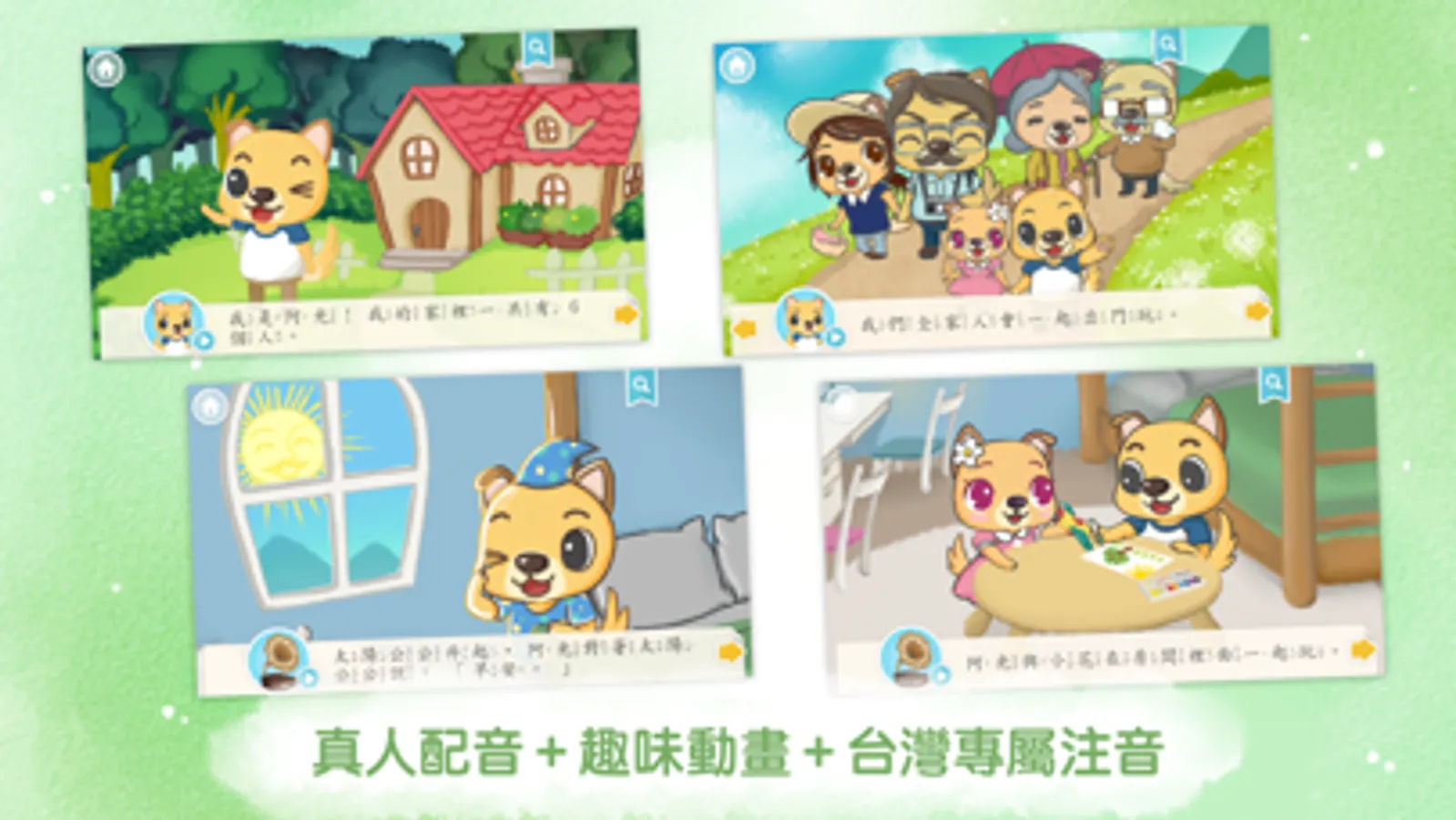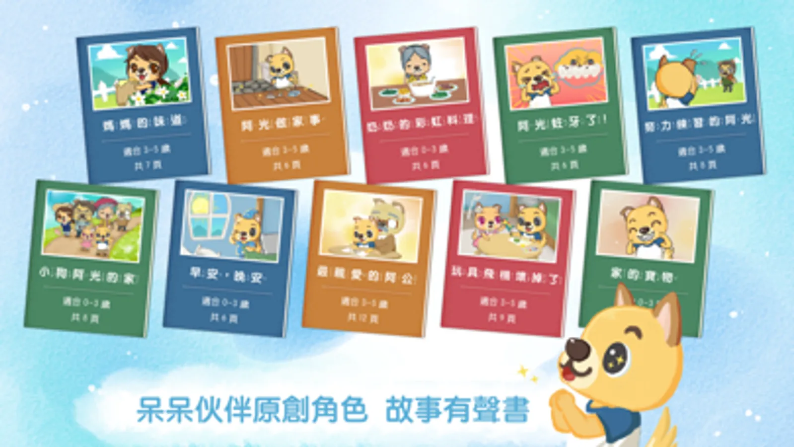 《呆呆童書 - 我的家》是以小狗阿光的家為故事主軸,為 0~5 歲的孩子用心打造的原創故事。