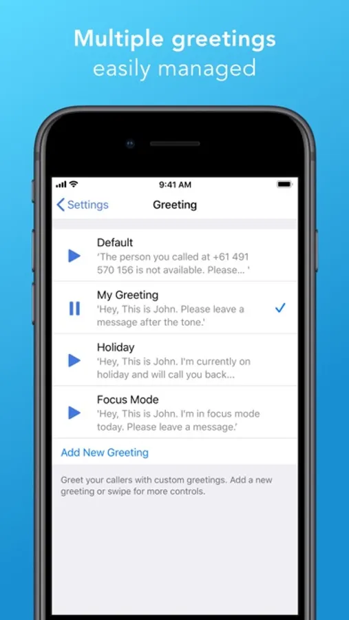 World Voicemail makes it easy for you to record your personalized greeting. Change it every season, or if you're away on holiday.