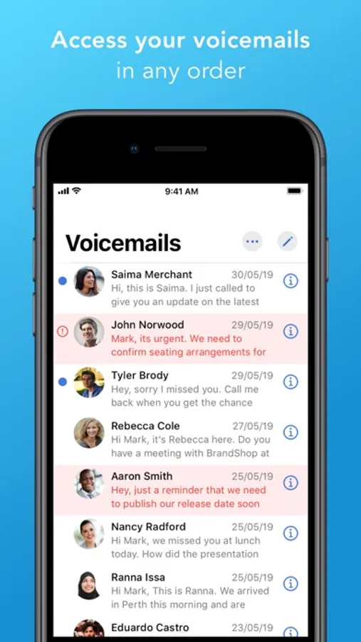 Navigating your voicemails is now as easy as a scroll and tap. View voicemails in threads, organised by contact.